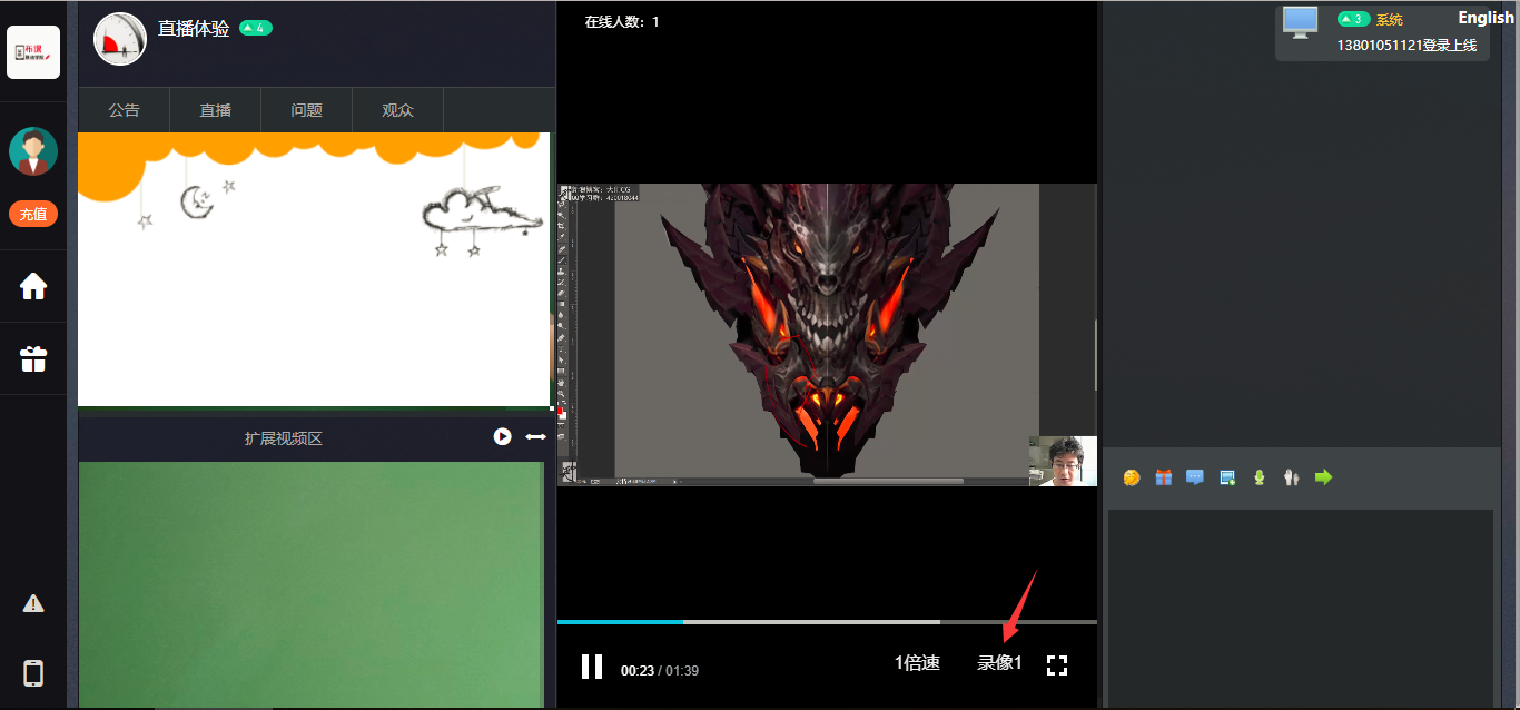 全程自动录像,关闭直播后,也不用担心用户看不到,后来进入的用户将直接观看回放 。后台可以将回放存下来编辑后作为资源,放到在线视频课程里使用...