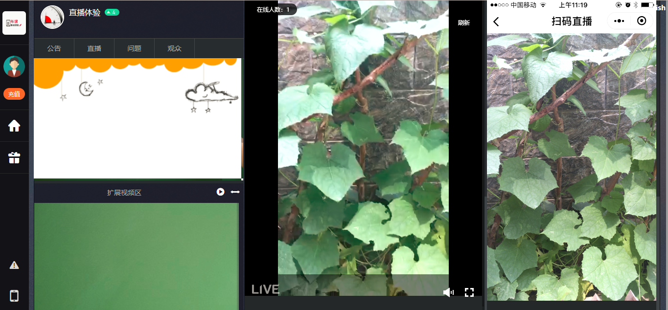 不需要安装任何软件,浏览器打开直播间就可以直播,用户可以通过浏览器观看也可以手机微信扫码观看...减少用户使用培训成本。