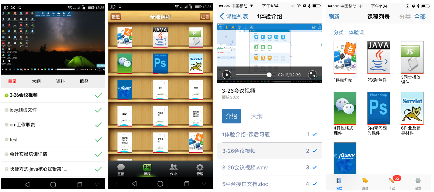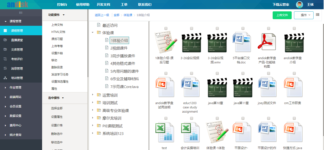 支持各种格式 。像资源管理器一样,可以拖拽上传,也可以批量上传。鼠标右键各种操作,设置章节,大纲,增删改。上传的课件不用重复上传,创建快捷方式到各个课程里,又可以组合出一套课程,适合各种场景,灵活方便。一致的操作,极大的降低了沟通成本。