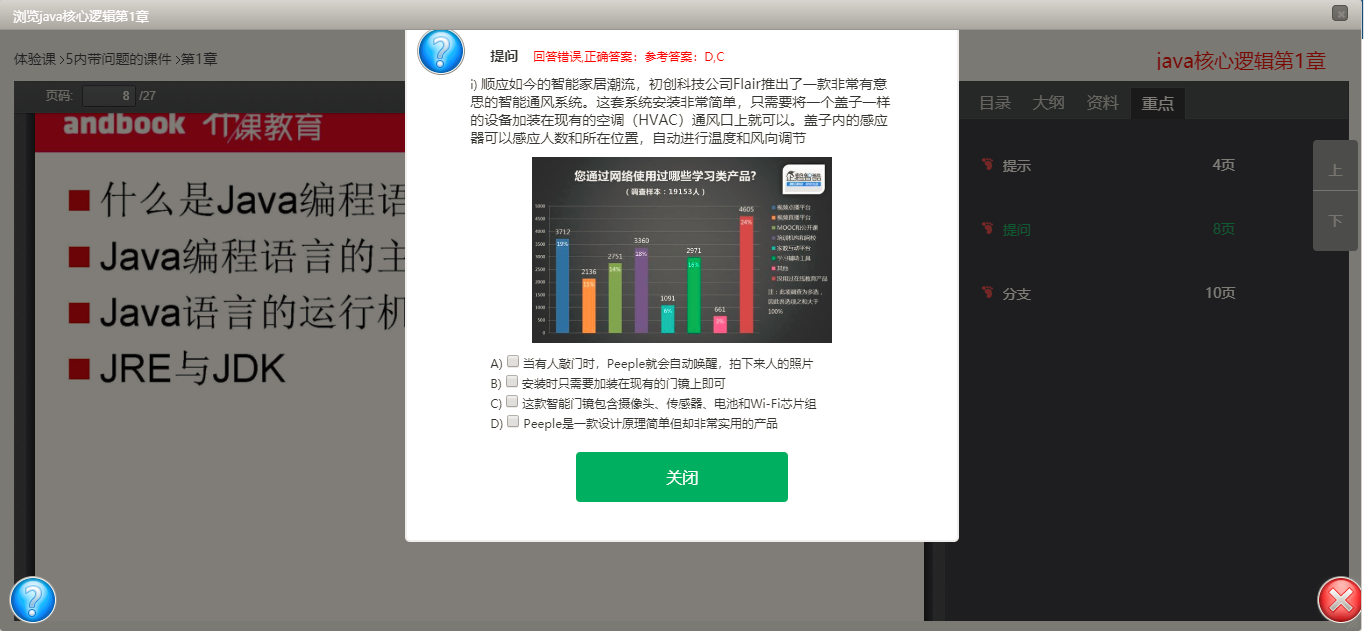 不论视频还是文档,您可以在希望学习的地方插入提问,这样当学生学习到这里时,就会弹窗提示。可以有效的帮助学习者注意到重难点,也可以有效的监控学习的效果。